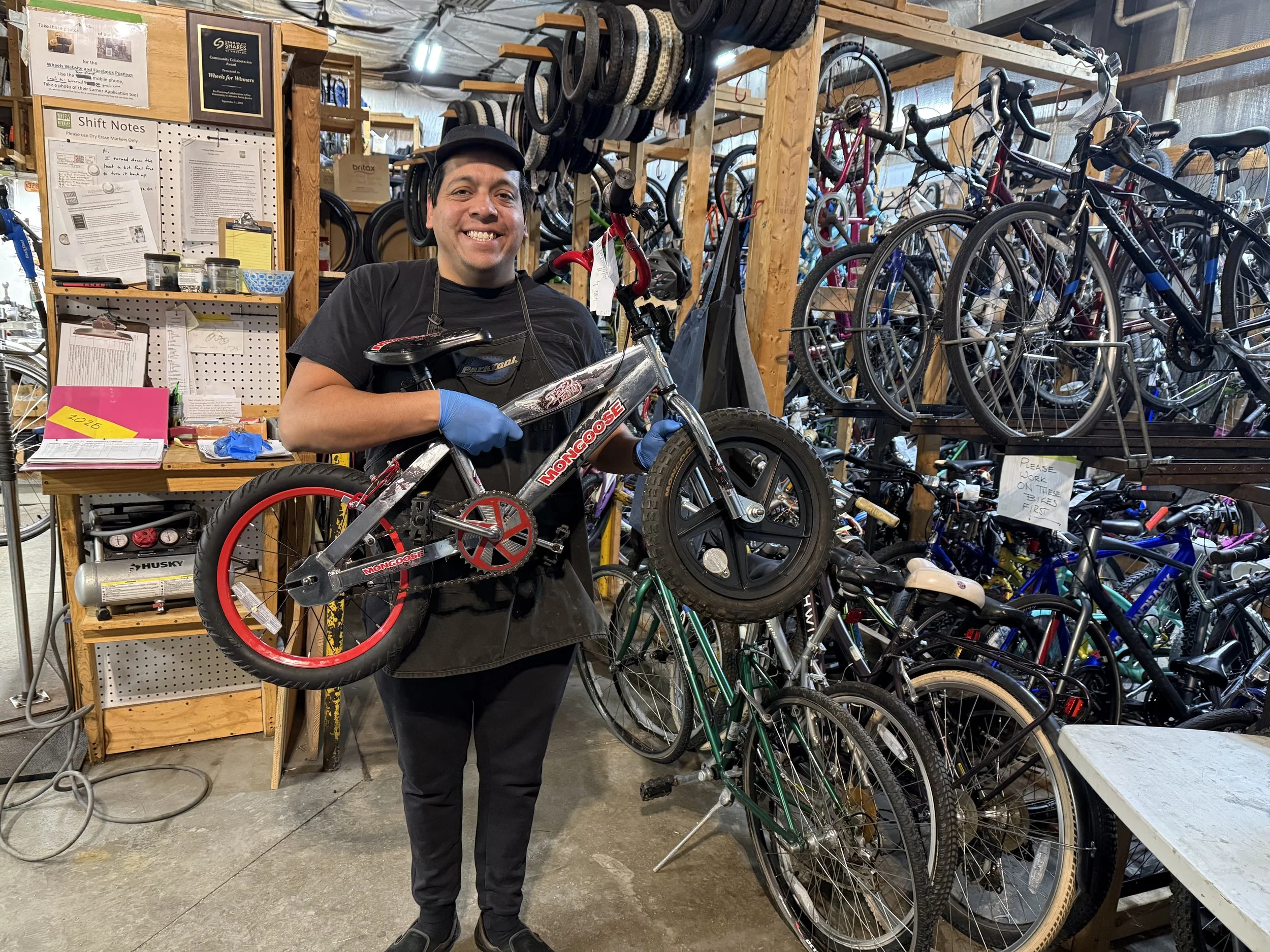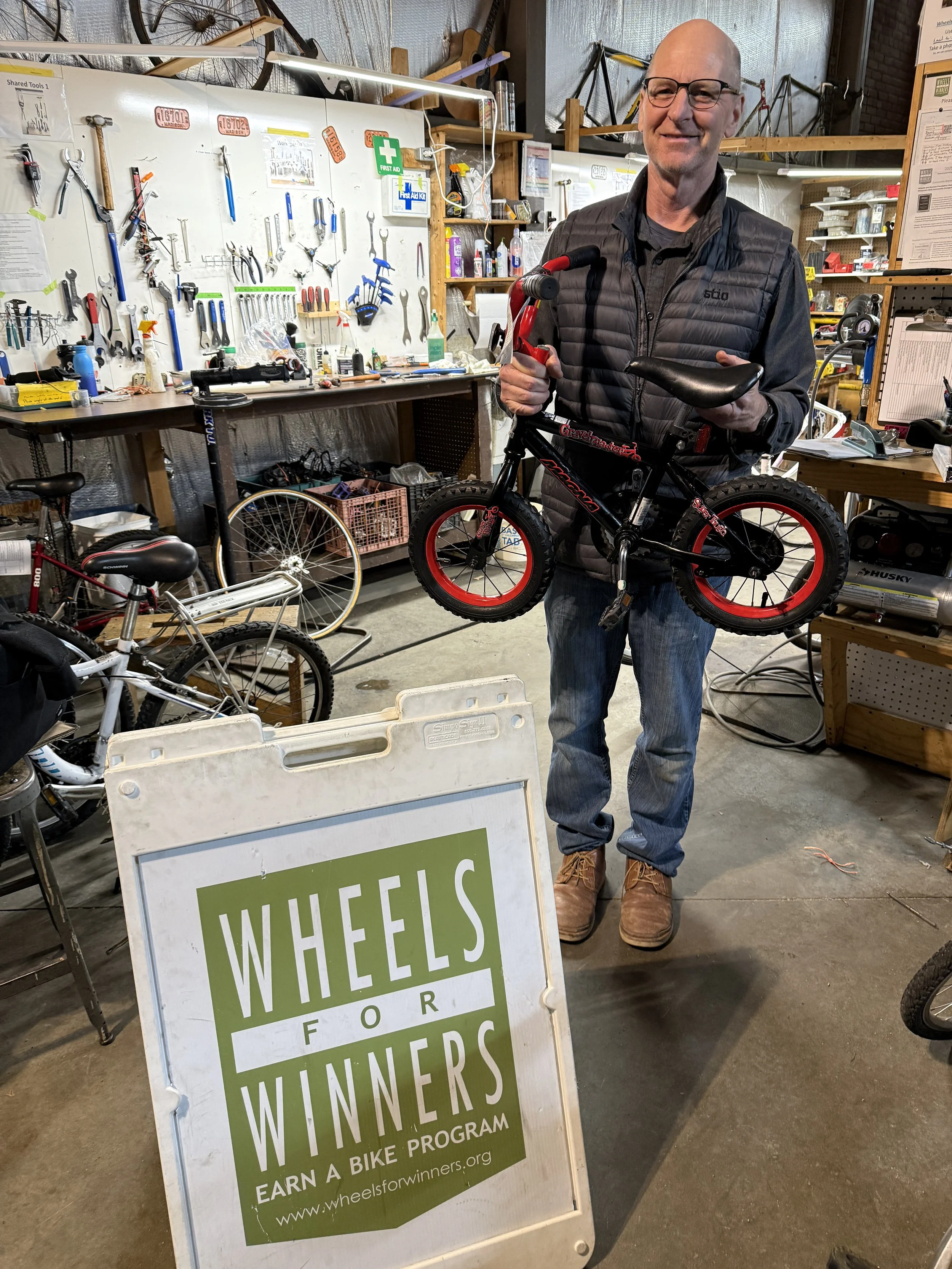 I've been a volunteer mechanic at Wheels for Winners for 5 years and I've learned how to perform magic And You can too, by helping us put a Big Smile on the face of a child getting a bike.